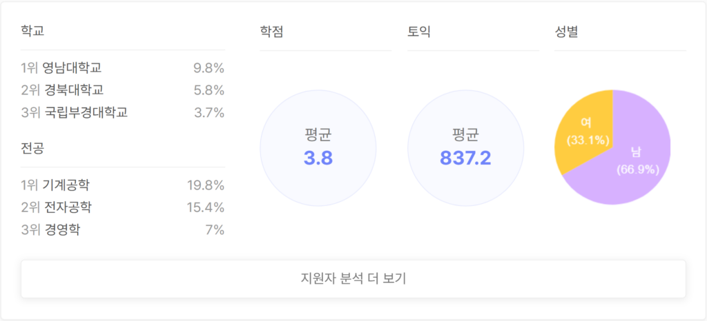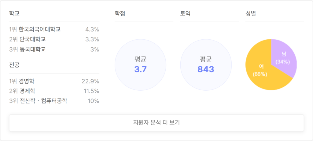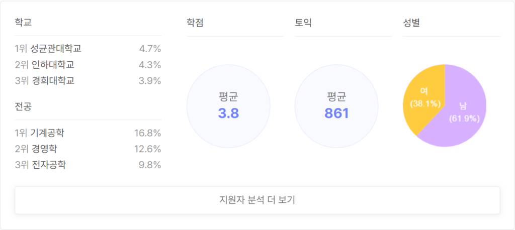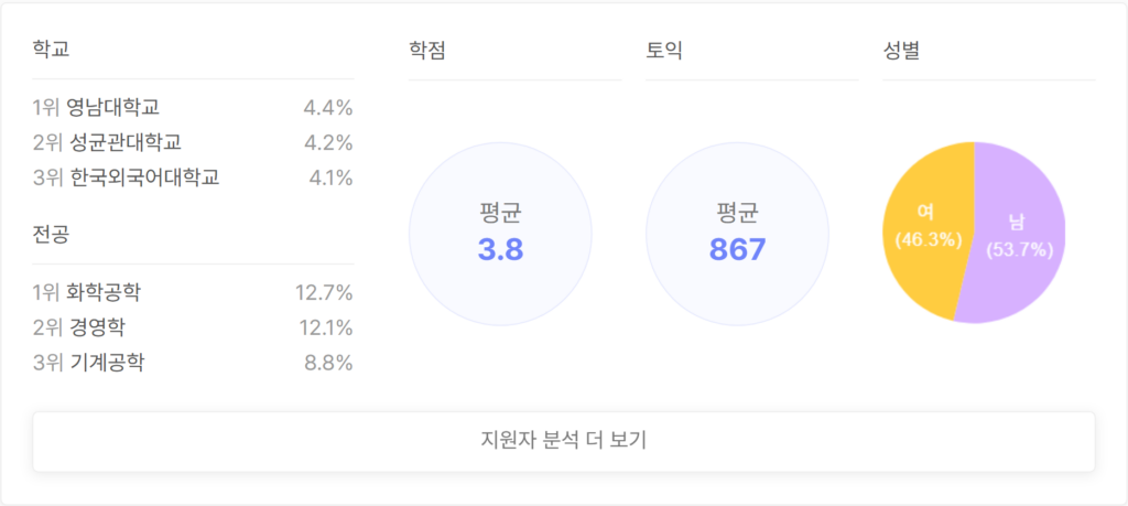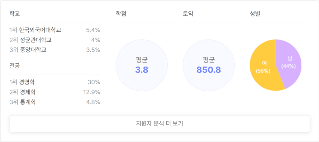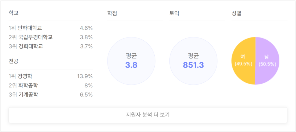 *조회수, 자소서 작성수, 지원자 스펙 분석: 10/13 8:00 기준
