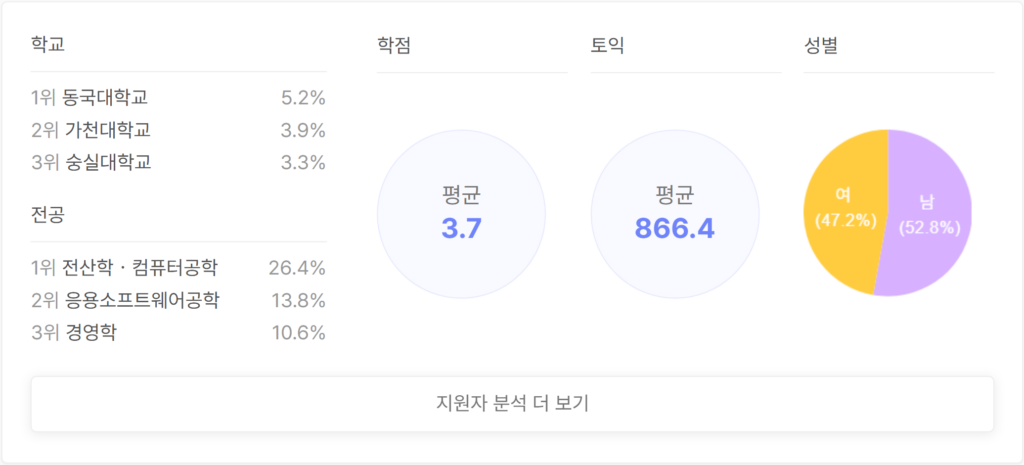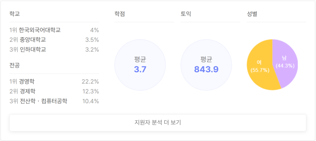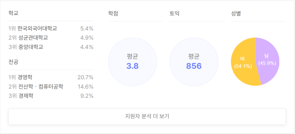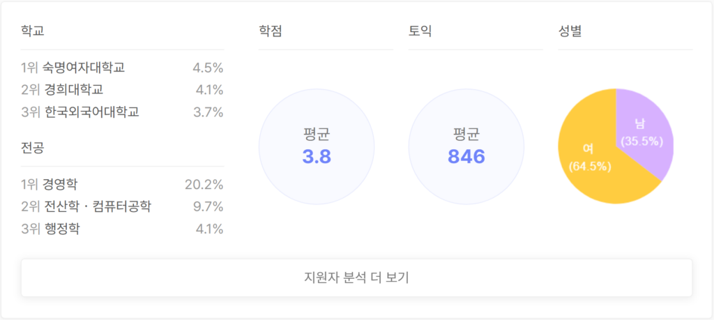 *조회수, 자소서 작성수, 지원자 스펙 분석: 10/20 8:00 기준