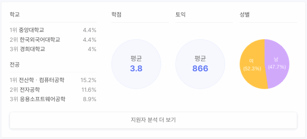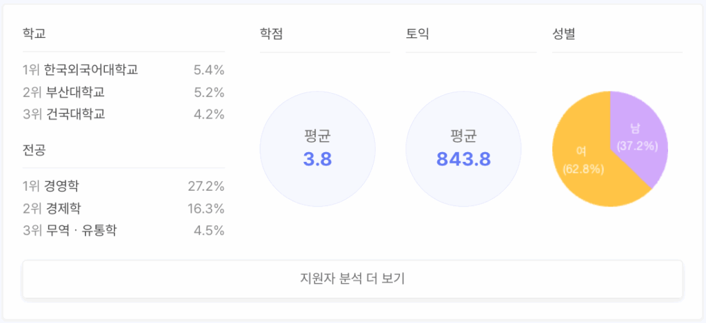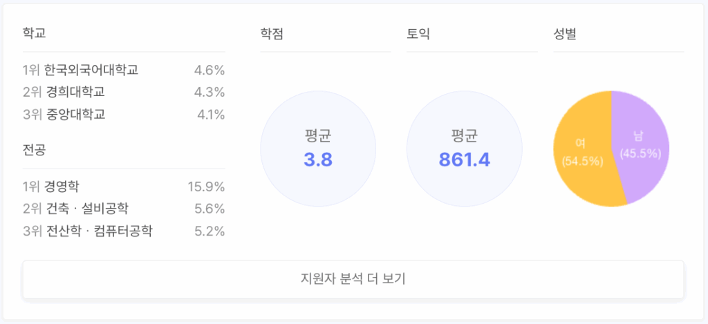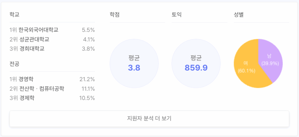 *조회수, 자소서 작성수, 지원자 스펙 분석: 12/8 14:00 기준