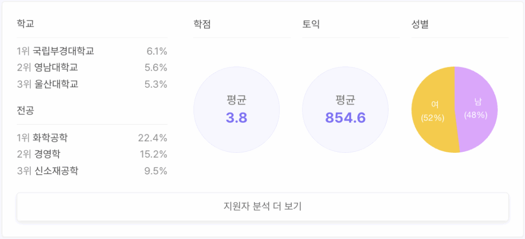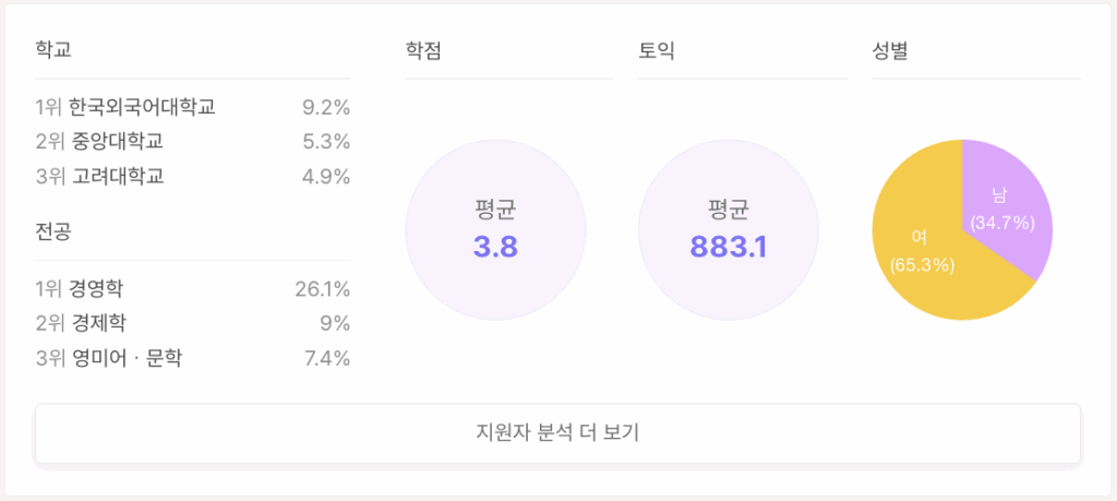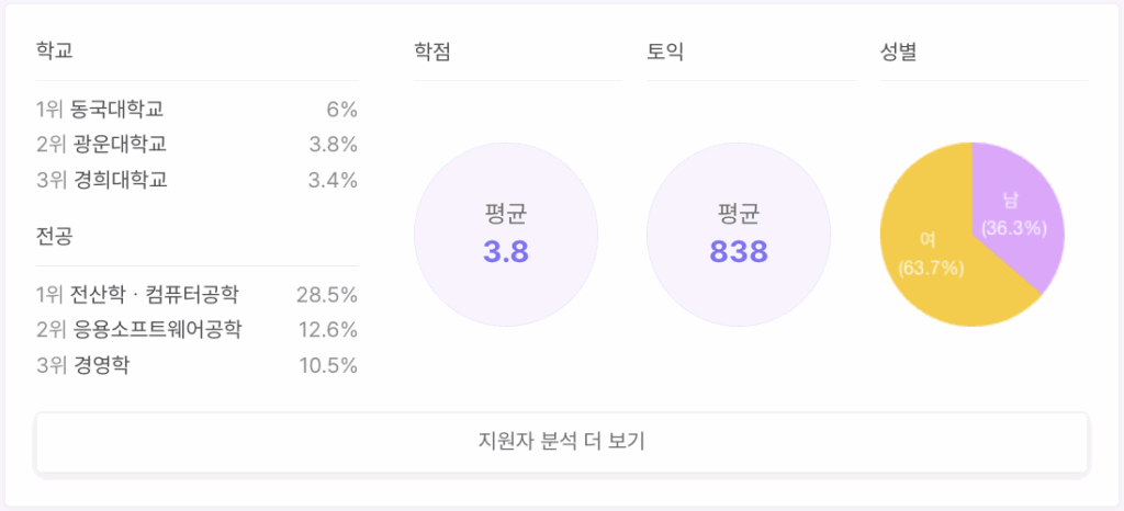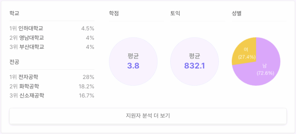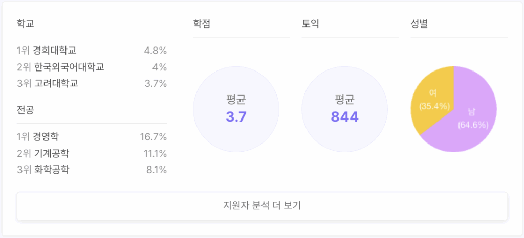 *조회수, 자소서 작성수, 지원자 스펙 분석: 12/29 14:00 기준