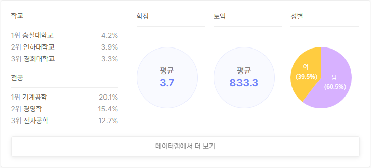 인테그리스코리아 실시간 지원자 스펙 분석 (25. 2. 10 8시 기준)