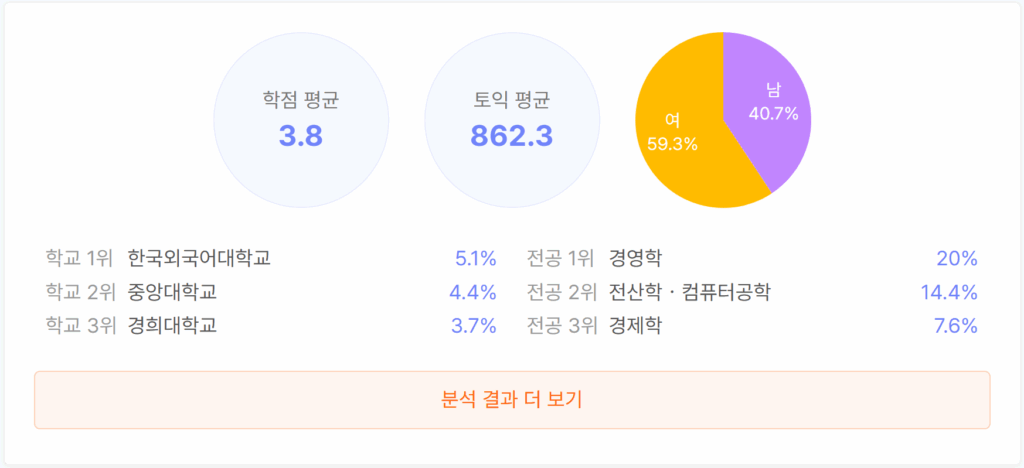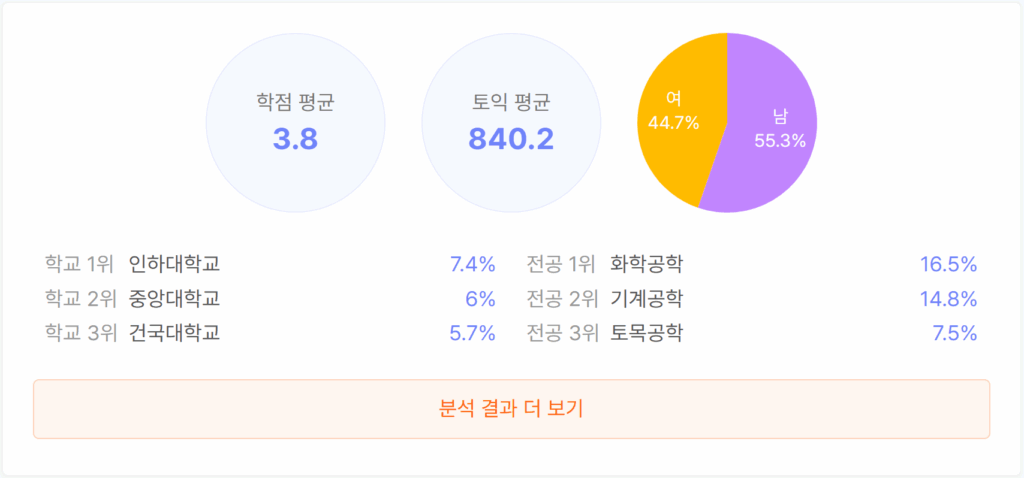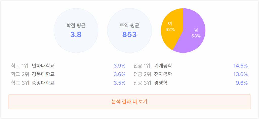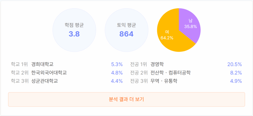 *조회수, 자소서 작성수, 지원자 스펙 분석: 3/16 14:00 기준