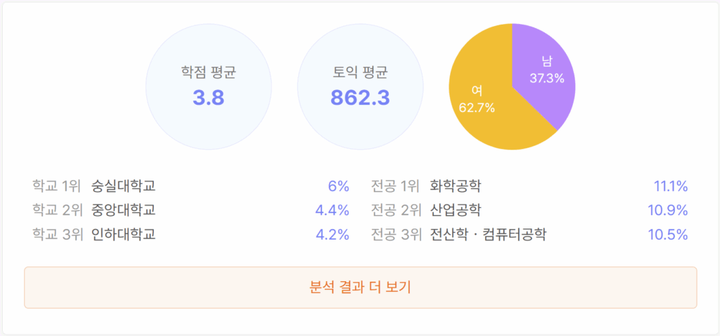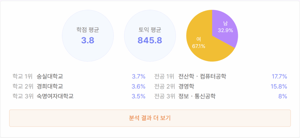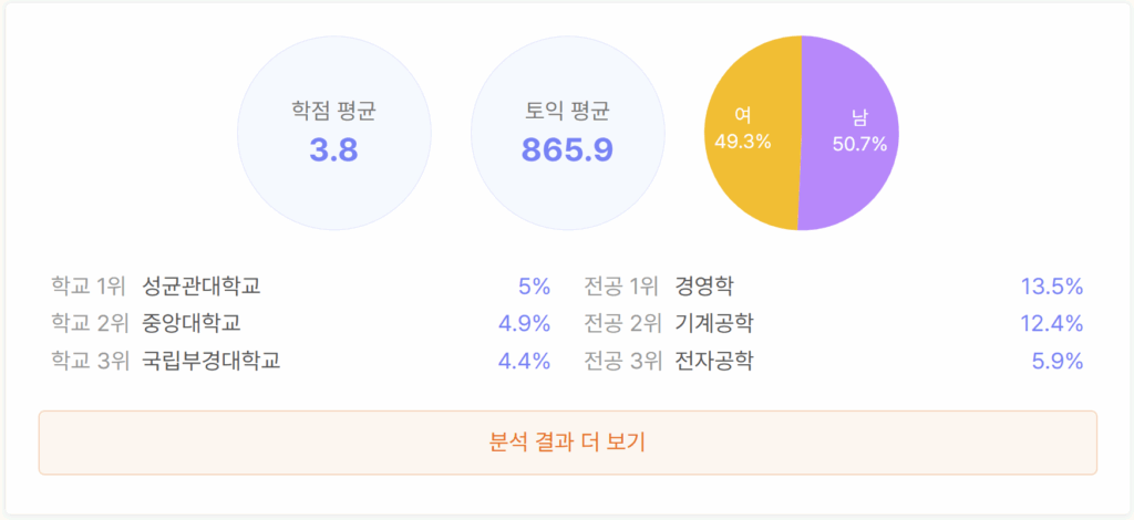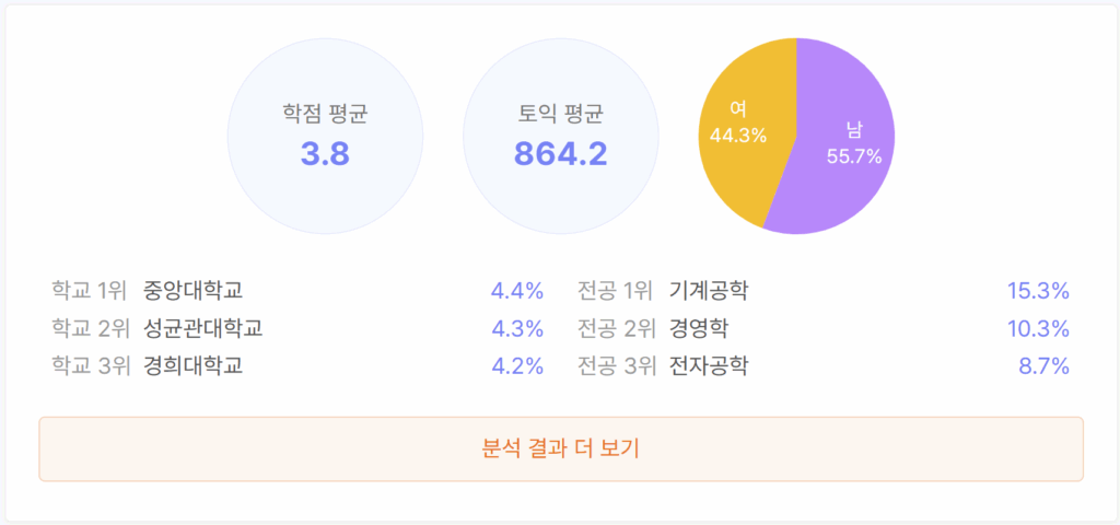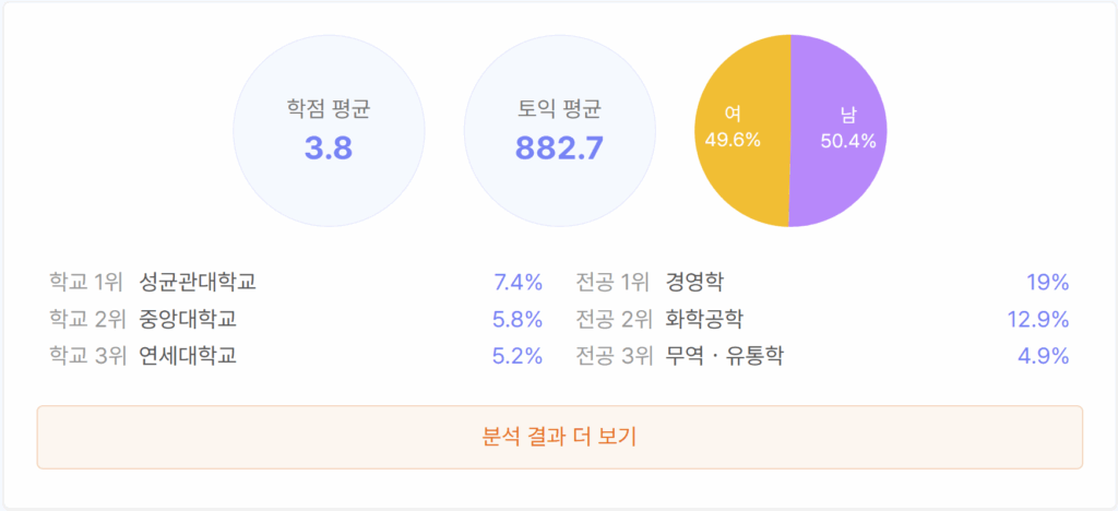 *조회수, 자소서 작성수, 지원자 스펙 분석: 3/30 14:00 기준