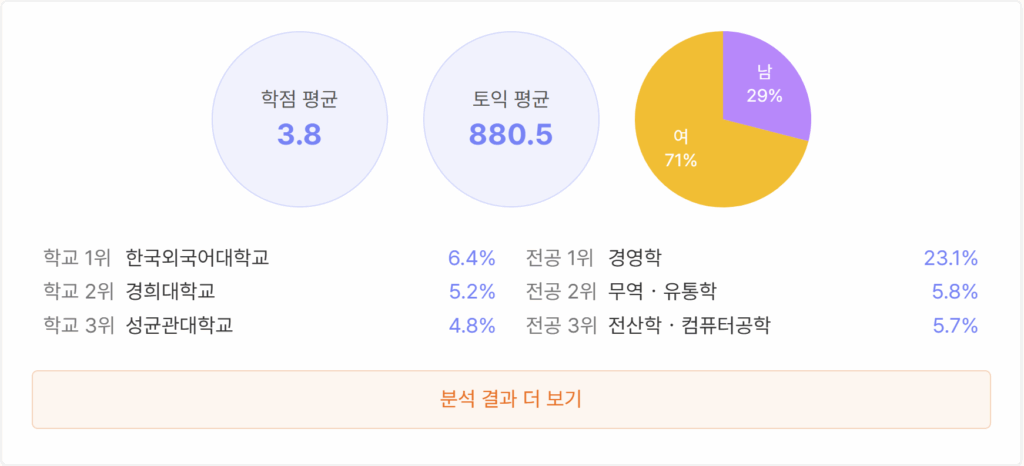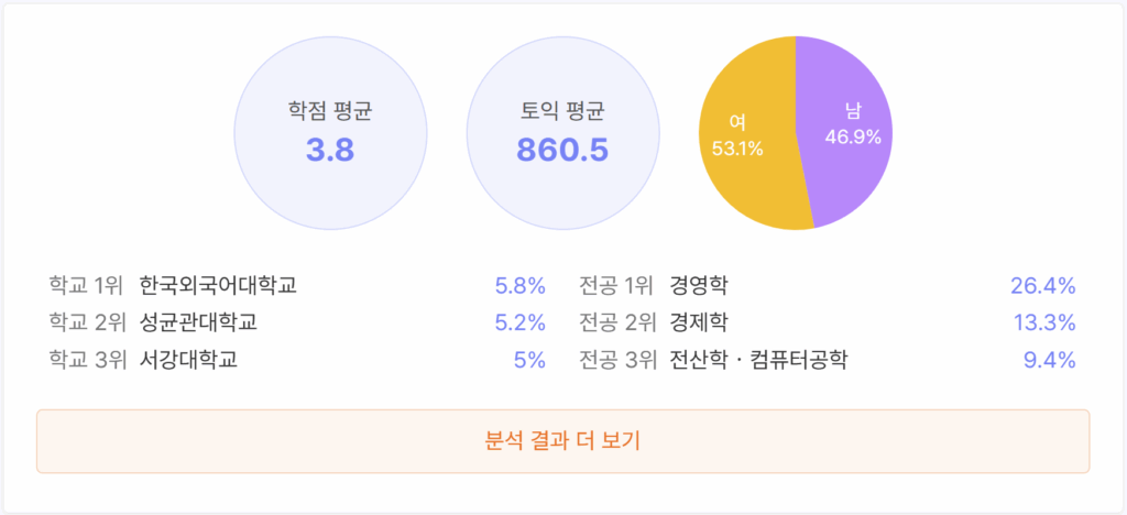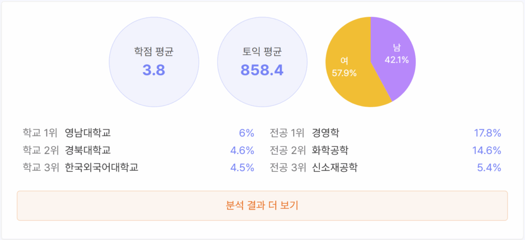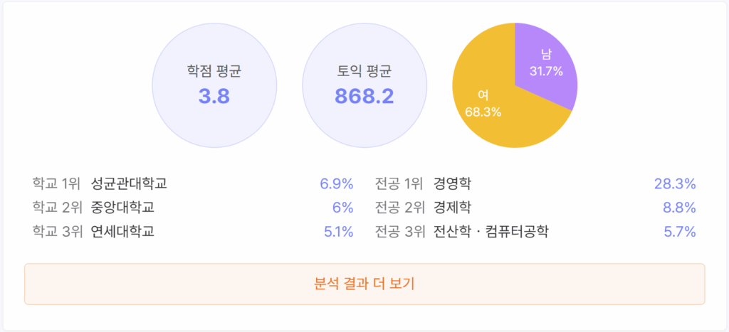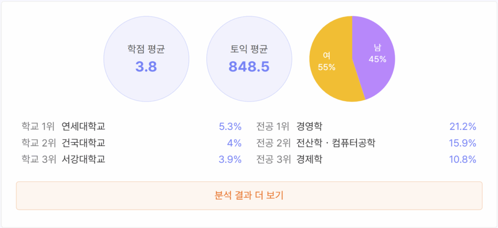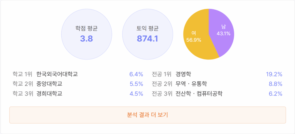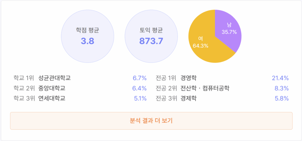 *조회수, 자소서 작성수, 지원자 스펙 분석: 4/13 14:00 기준