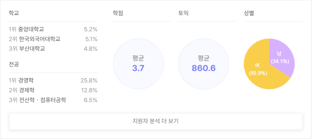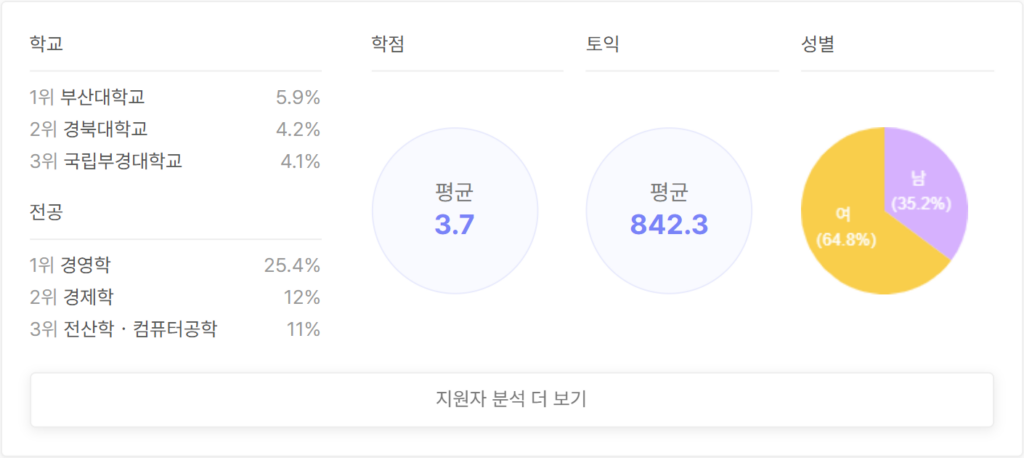 한국우편사업진흥원 실시간 지원자 스펙 분석