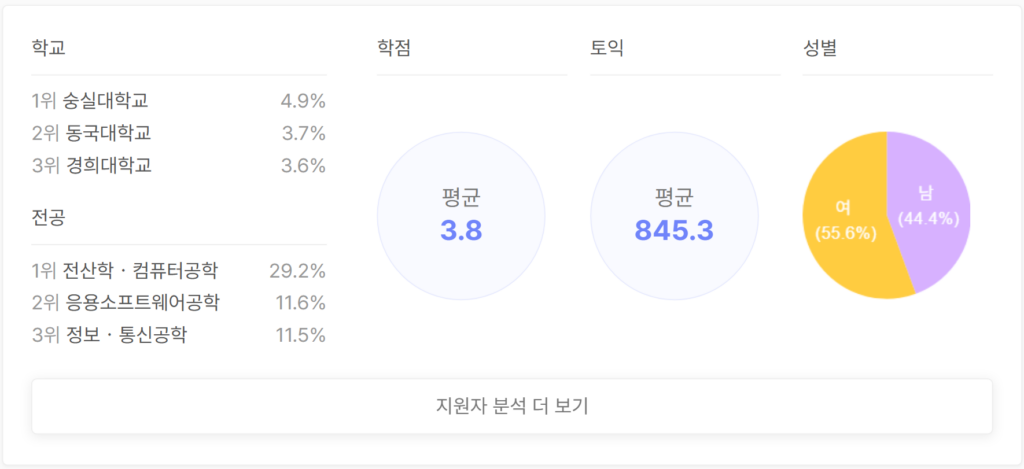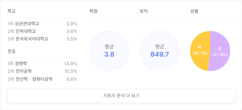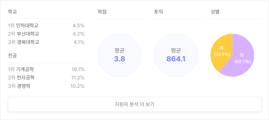 현대그룹 실시간 지원자 스펙 분석