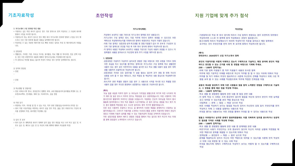 4단계 [초안 작성] 보내주신 자료를 바탕으로 인사담당자를 사로잡을 논리적인 초안을 만듭니다.