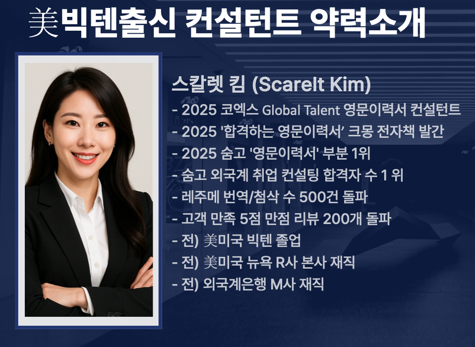글로벌 커리어 전문가가 직접 만드는 ‘합격 중심’ 영문 이력서.