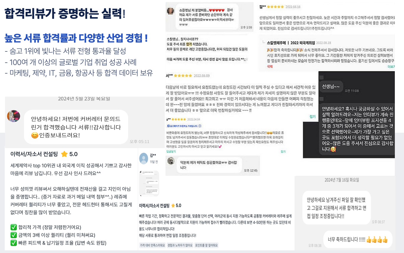 2025 숨고 영문이력서 부문 고객 만족도 1위 / 누적 합격자 수 200명 돌파