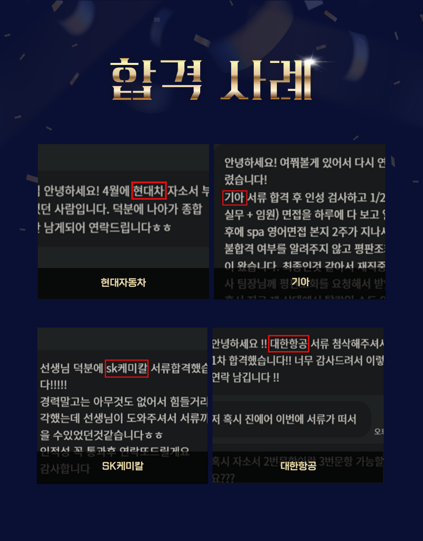 매우 직설적이었지만 현실적으로 어떤 문제가 있는지 명확하게 파악할 수 있었어요. 자소서 문단별로 문제점과, 해결책, 예시를 함께 제공해주셔서 앞으로 어떻게 써야하는지 쉽게 이해할 수 있었어요.