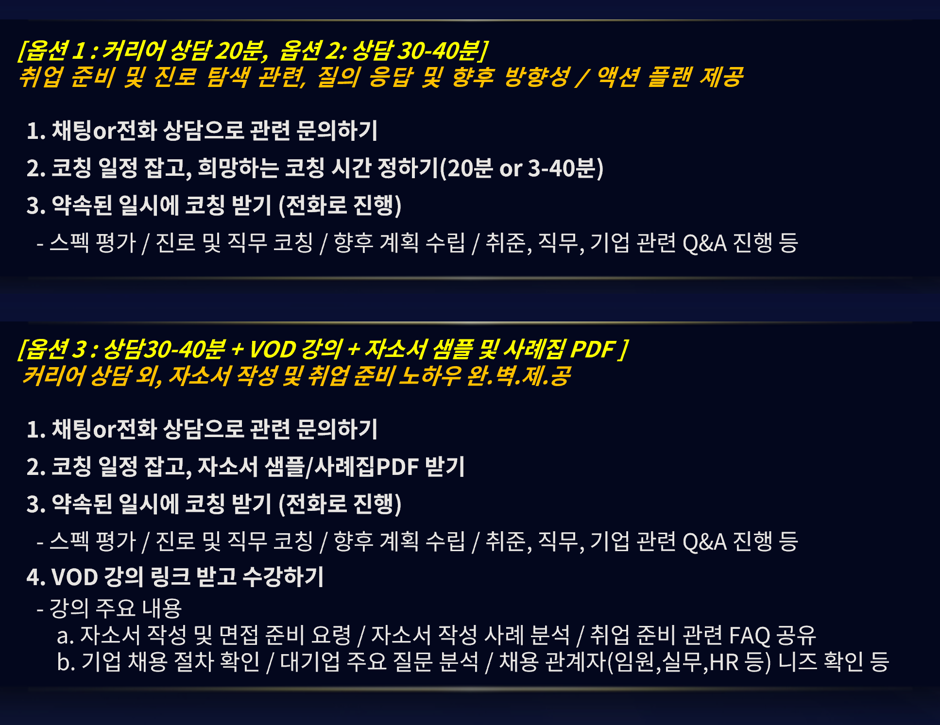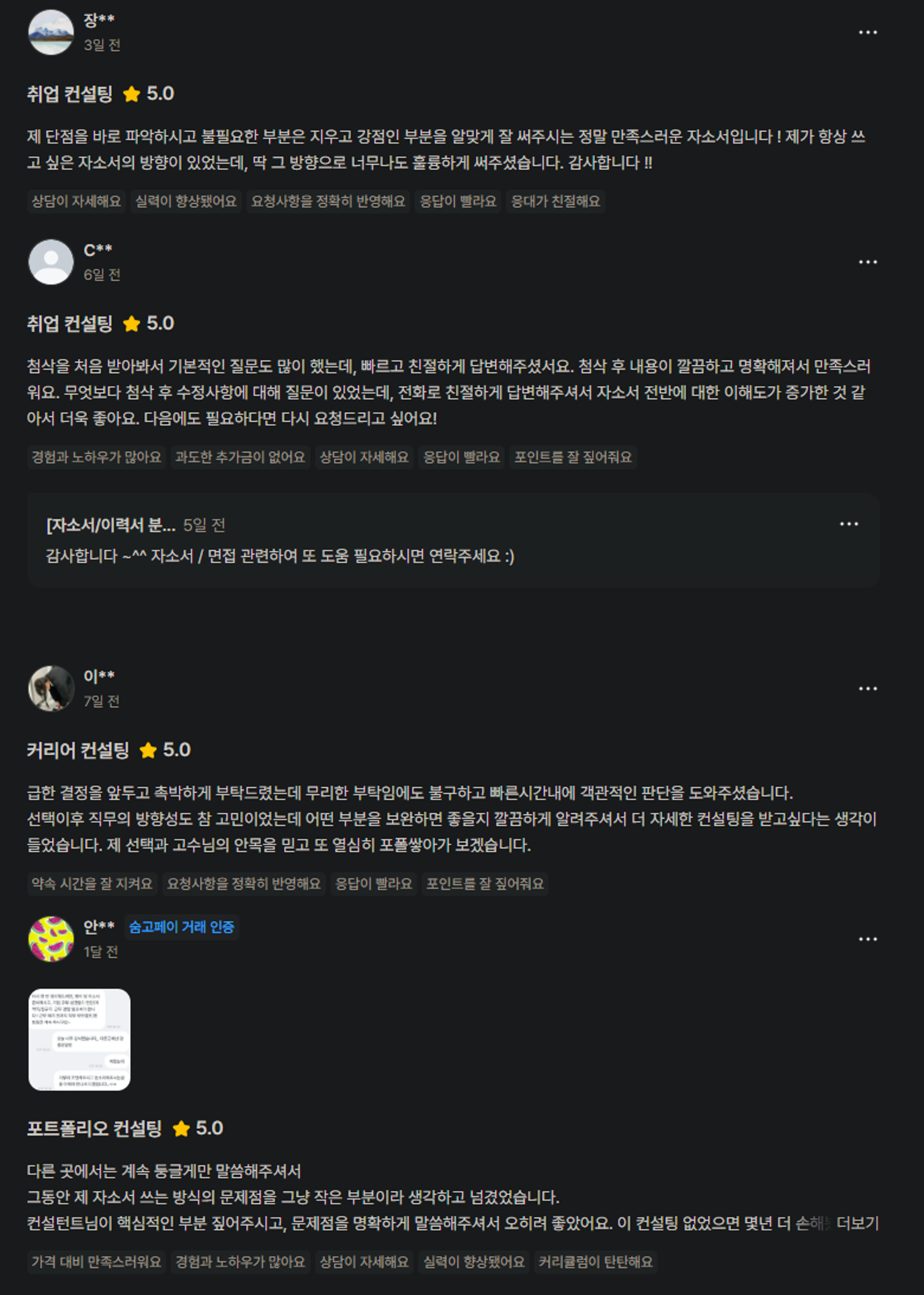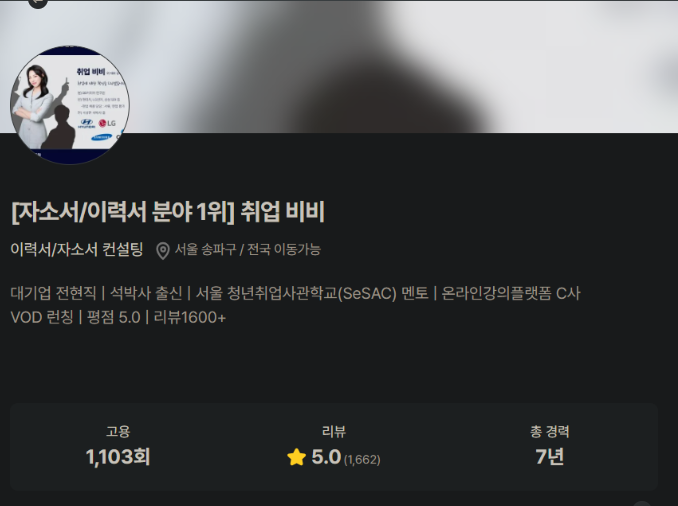 취업 관련 코칭 일체 : 스펙 평가 / 자소서 첨삭 / 진로 및 직무 상담, 계획 수립 등