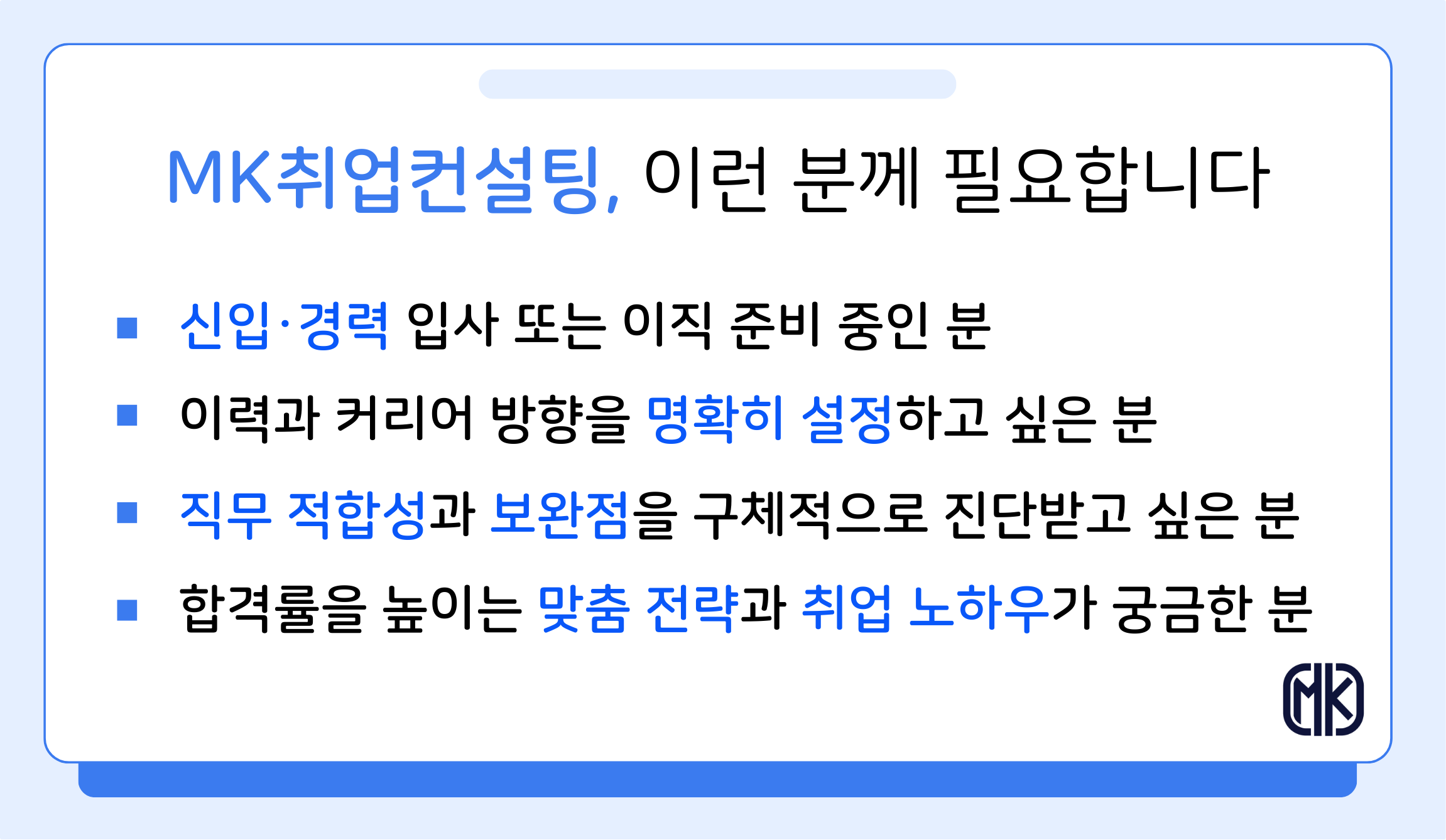 이런 분들을 돕기 위해 MK취업컨설팅이 존재합니다.