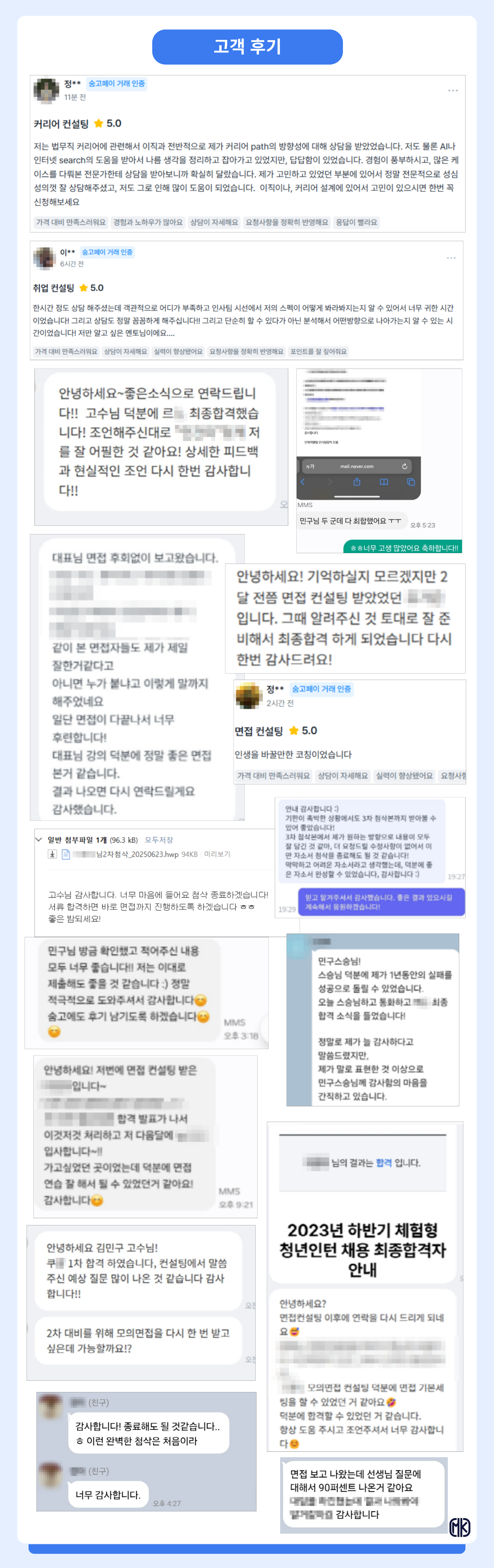 - 공기업/대기업/금융권 서류컨설팅 합격 사례 다수