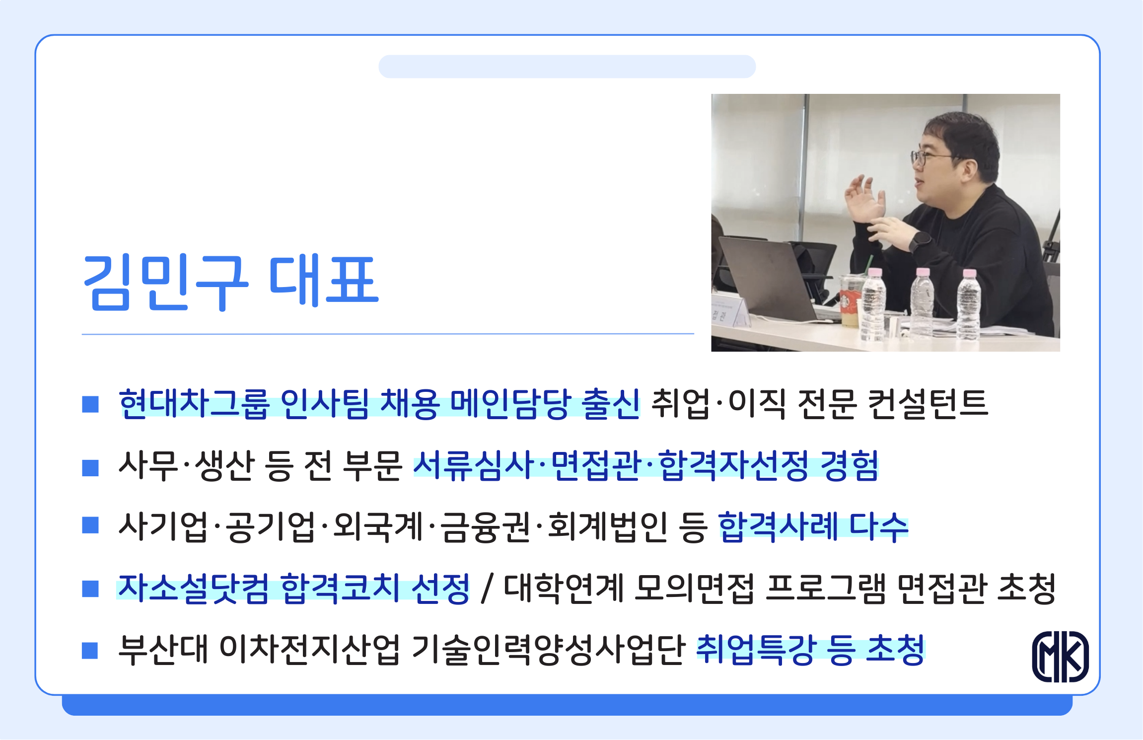 Ⅰ. MK취업컨설팅 김민구 대표 주요 경력