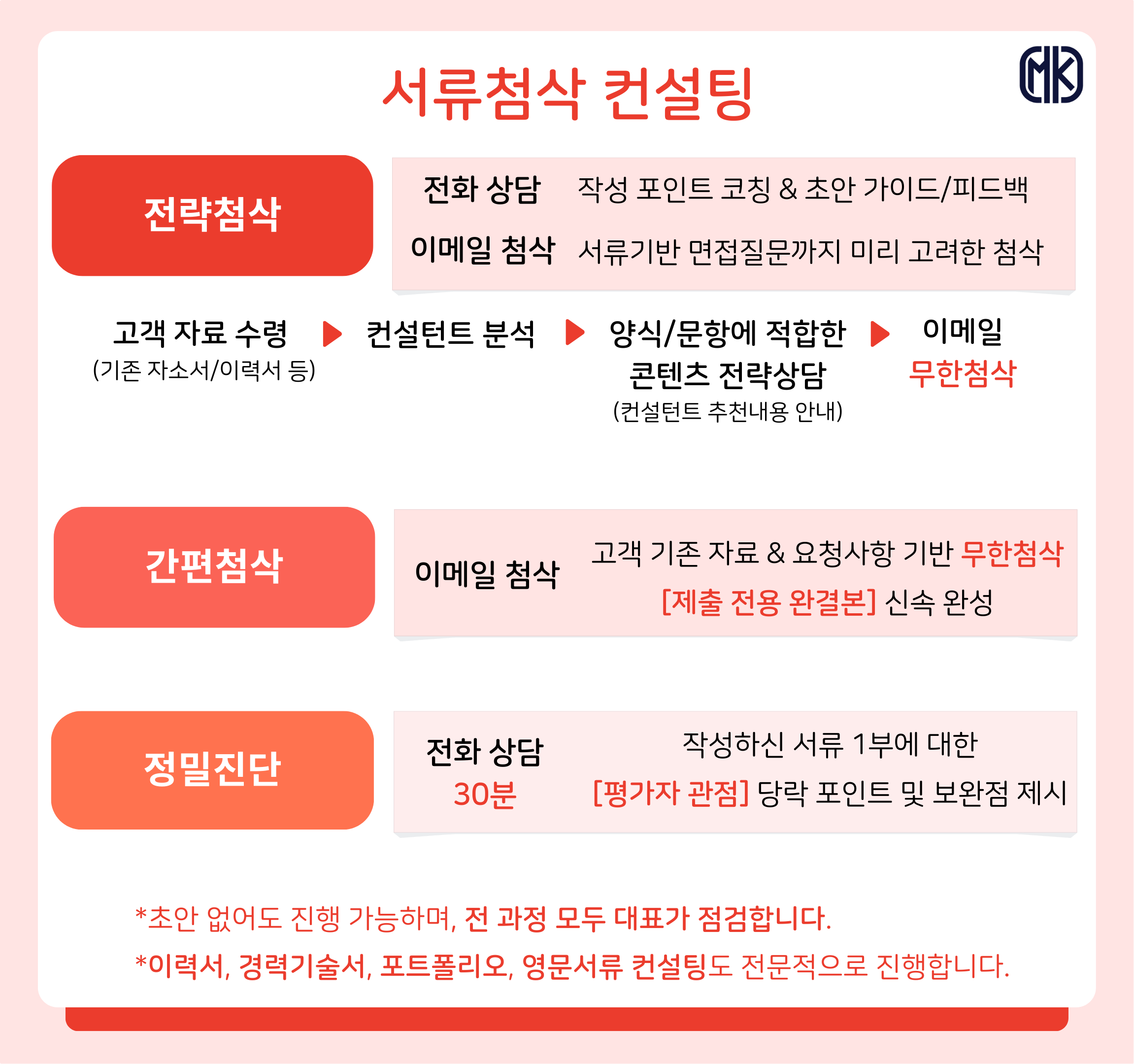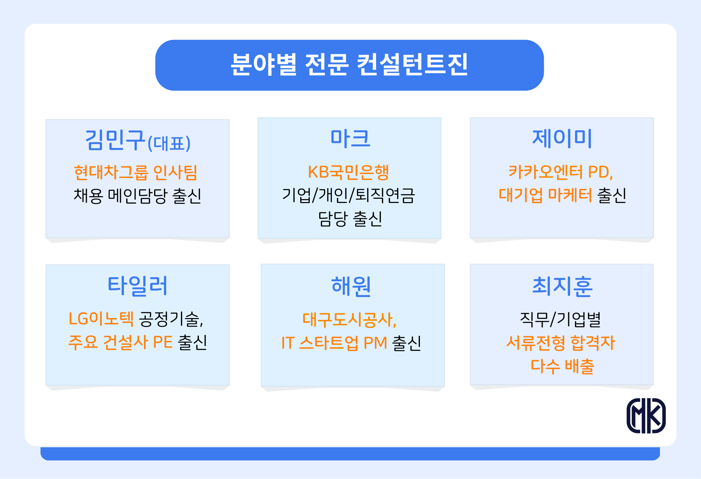 MK취업컨설팅은 실무 경험과 팩트 기반의 컨설팅을 추구합니다.