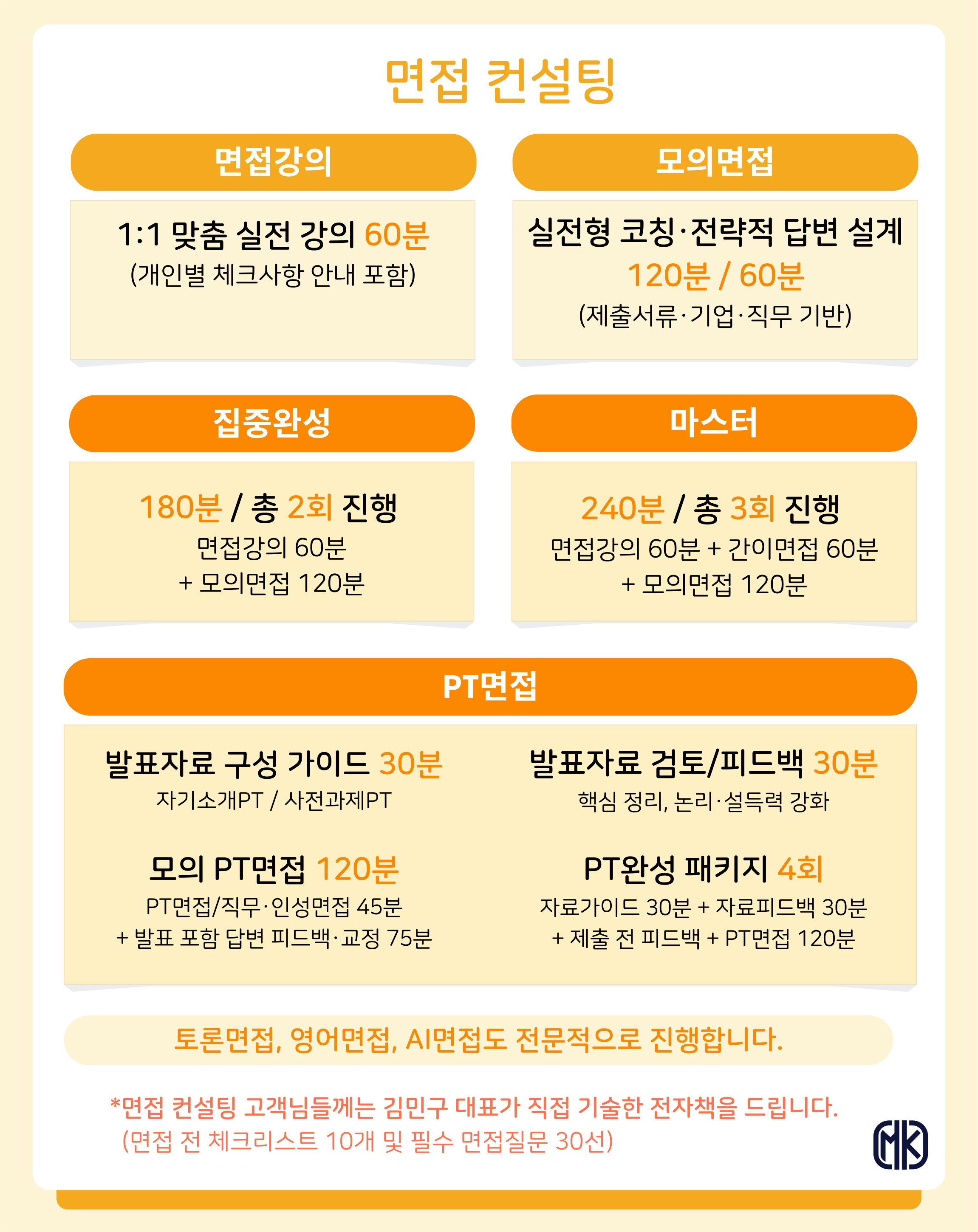 ✔️ 면접 컨설팅 (1차·2차 면접, PT·토론·사전과제 등)