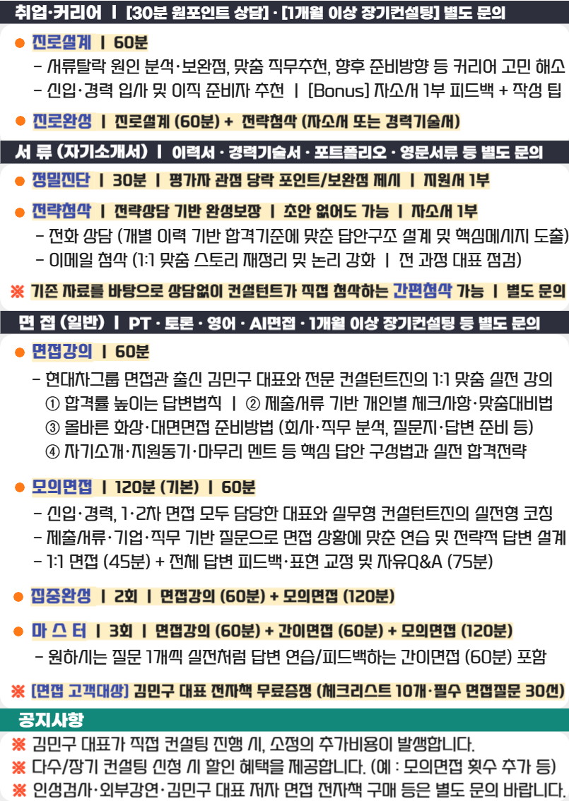 진로설계·서류·면접까지 한 번에! 맞춤 컨설팅에 할인·선물까지 챙기는 올인원 패키지