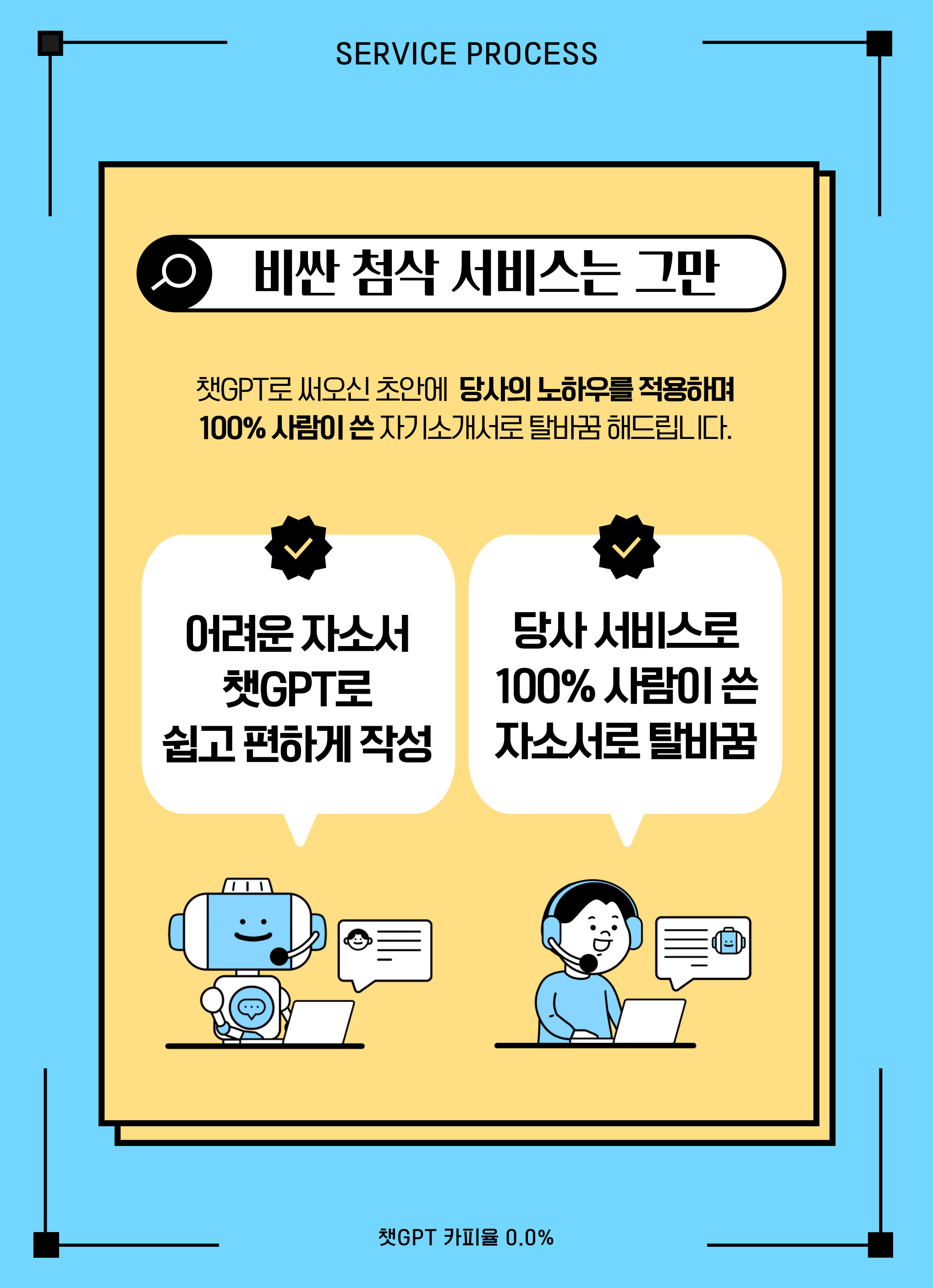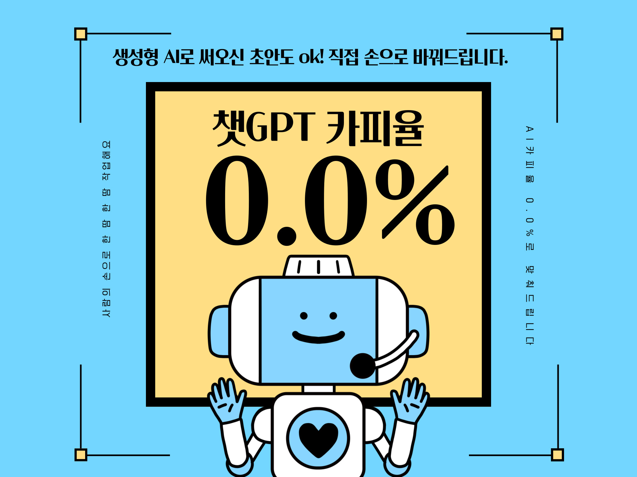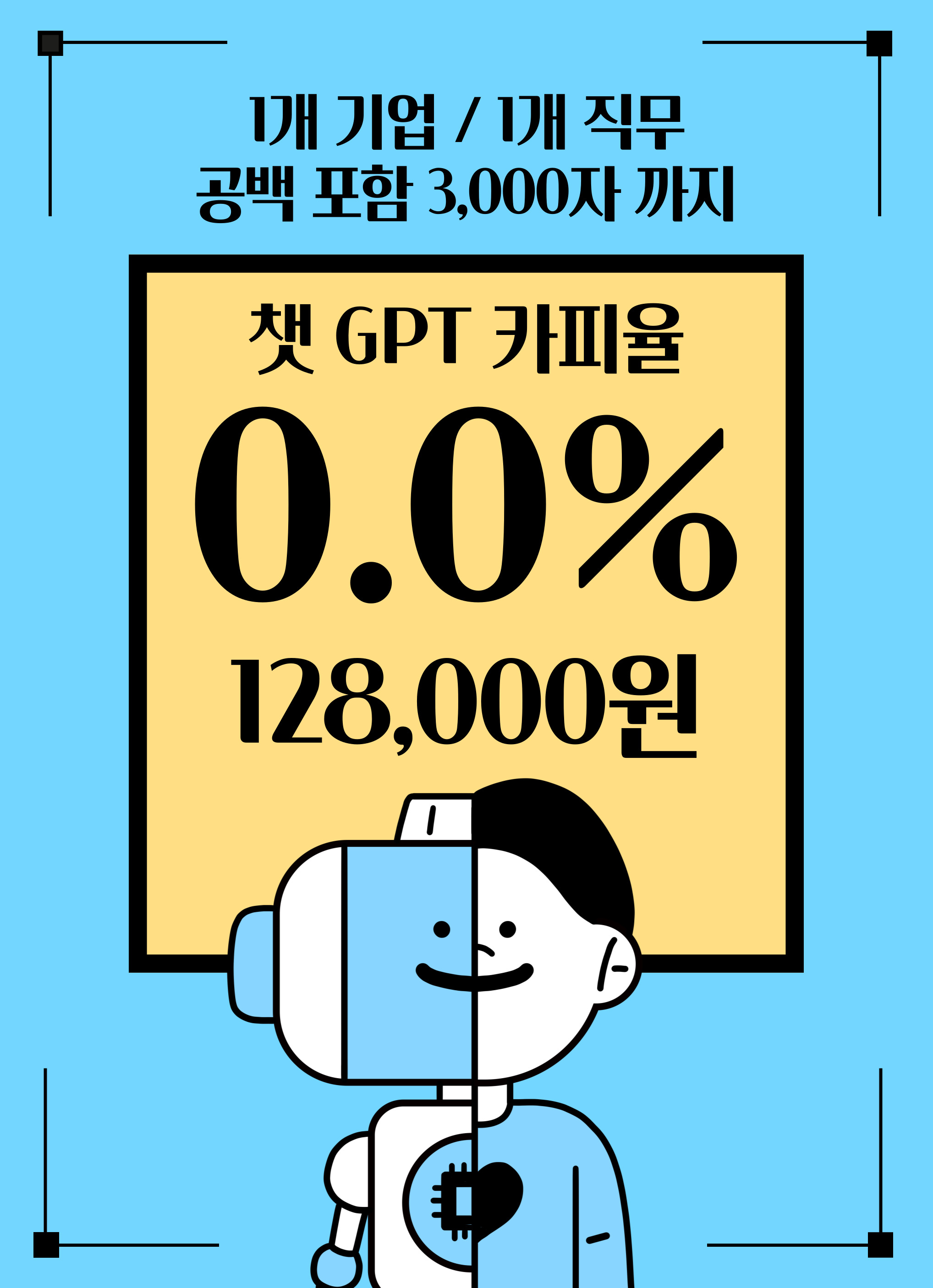 챗GPT 사용 100% 초안 자기소개서, AI 카피율 0.0%로 만들어드립니다.