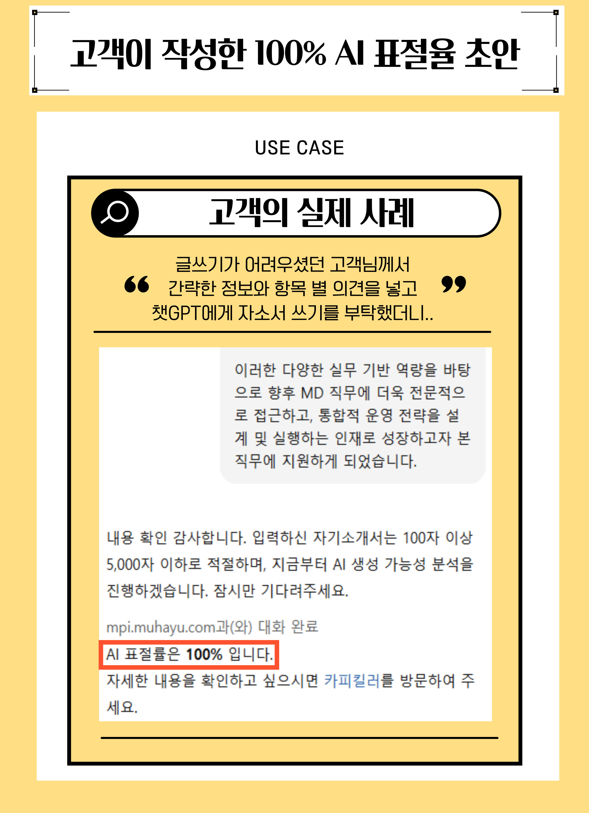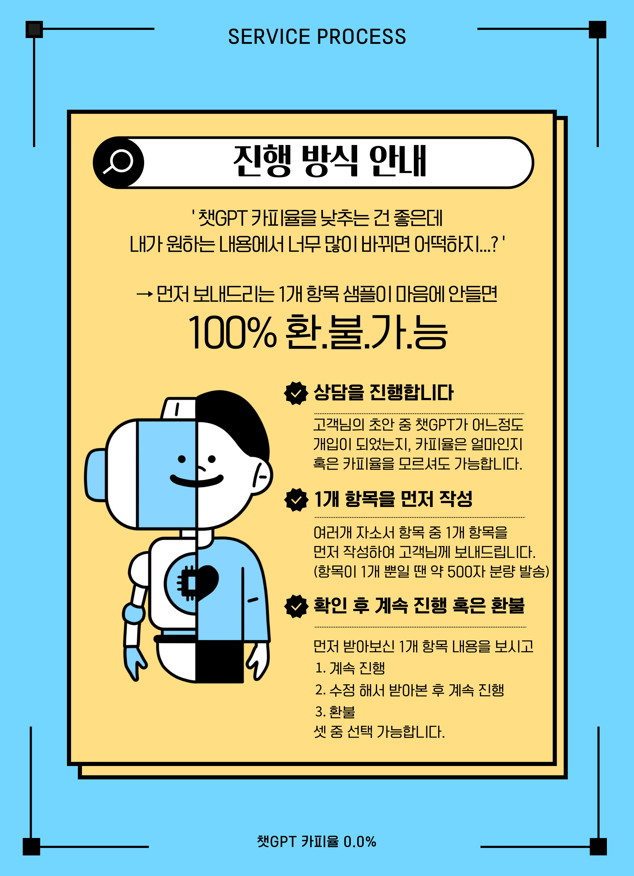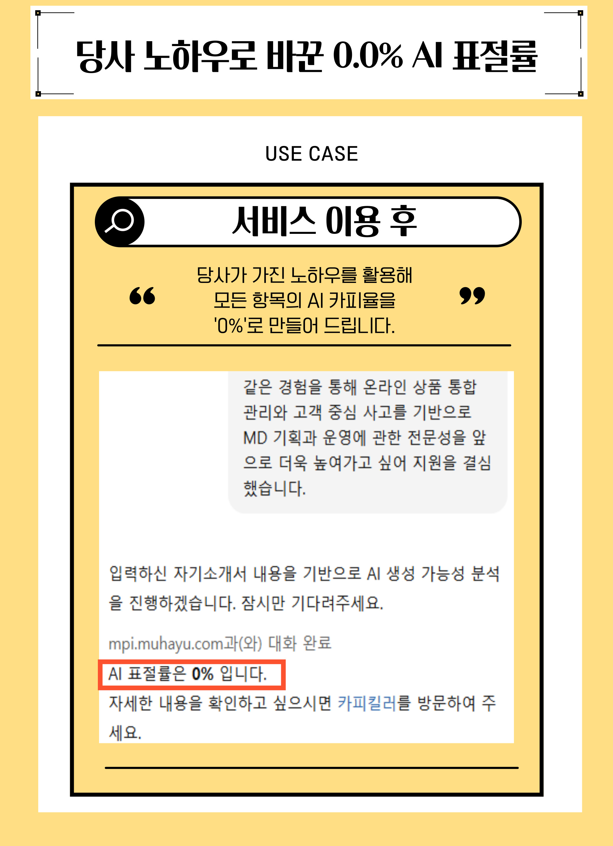 챗GPT 사용 100% 초안 자기소개서, AI 카피율 0.0%로 만들어드립니다.