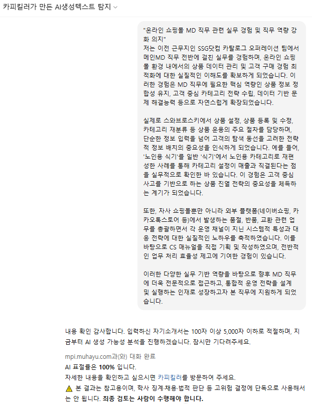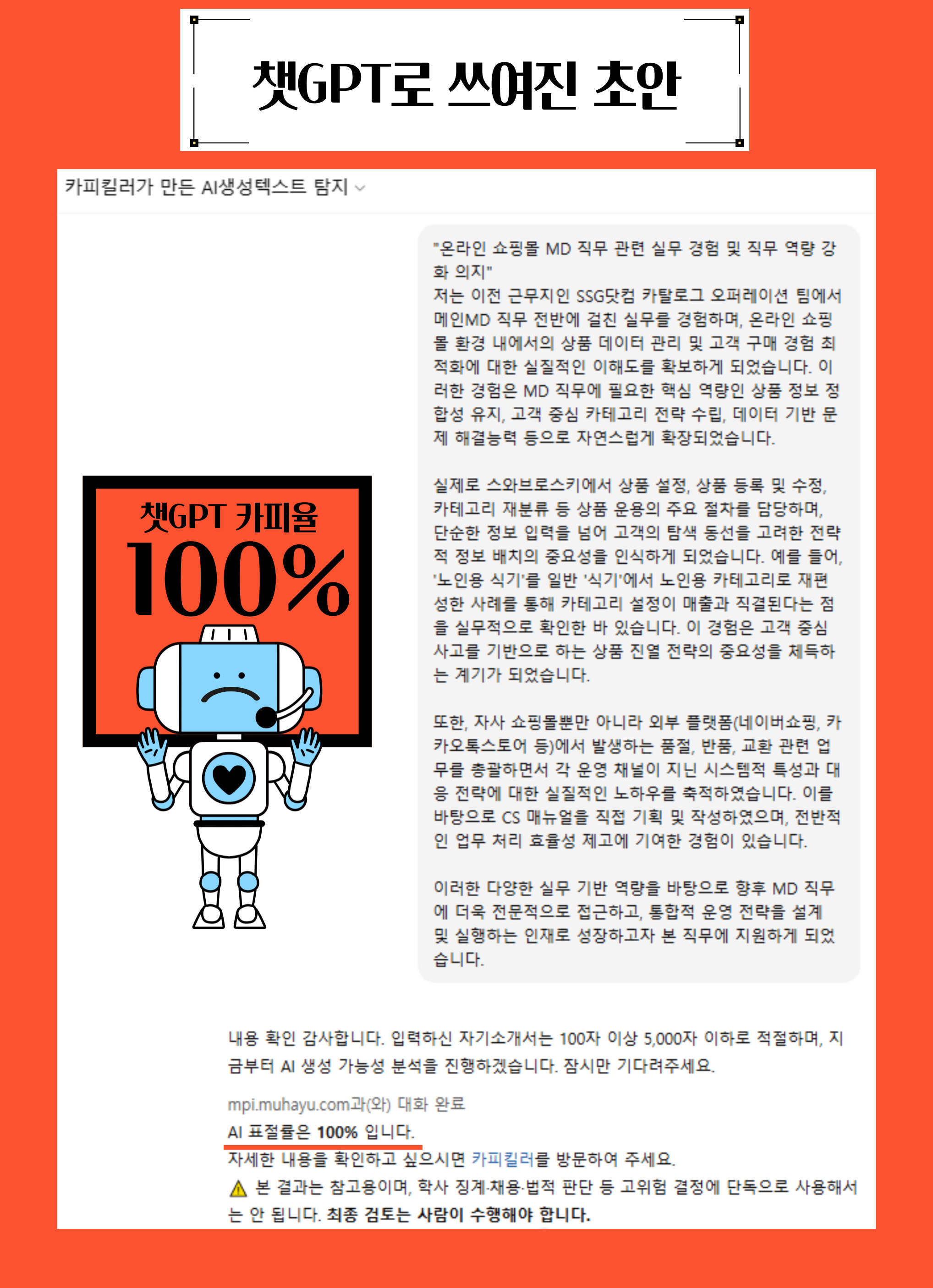 AI 카피 프로그램 및 챗 GPT 킬러 등에 검출되지 않는 자기소개서 초안 완성