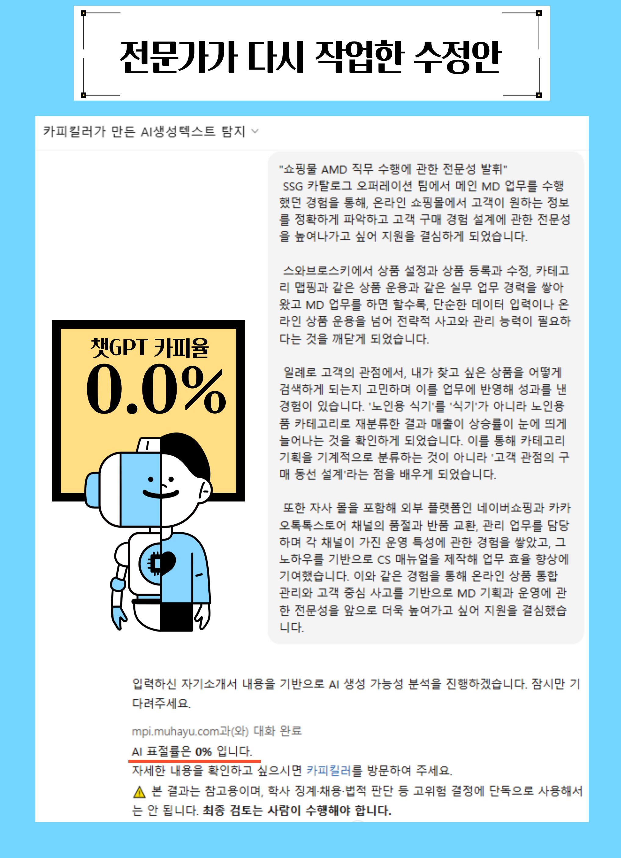 2) 작업 후 당사 노하우를 통해 AI 표절율 0.0%로 만든 초안