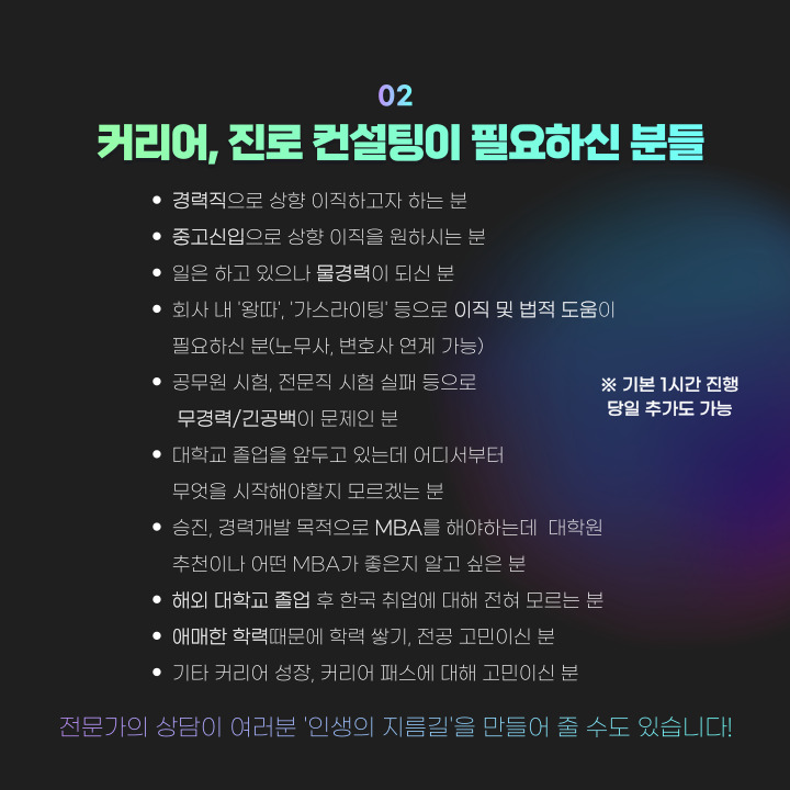 1:1 진로직무 및 이직, 커리어 상담 서비스