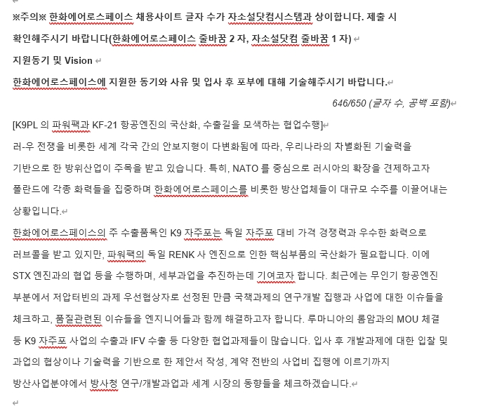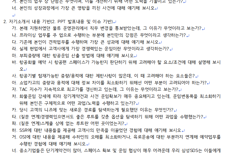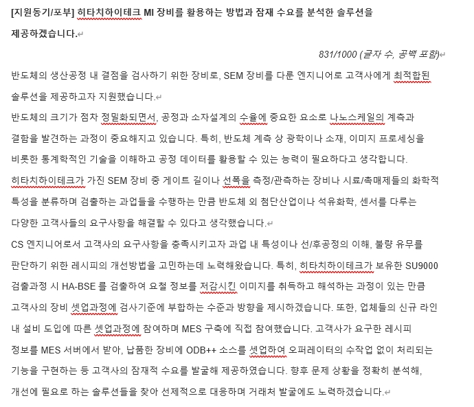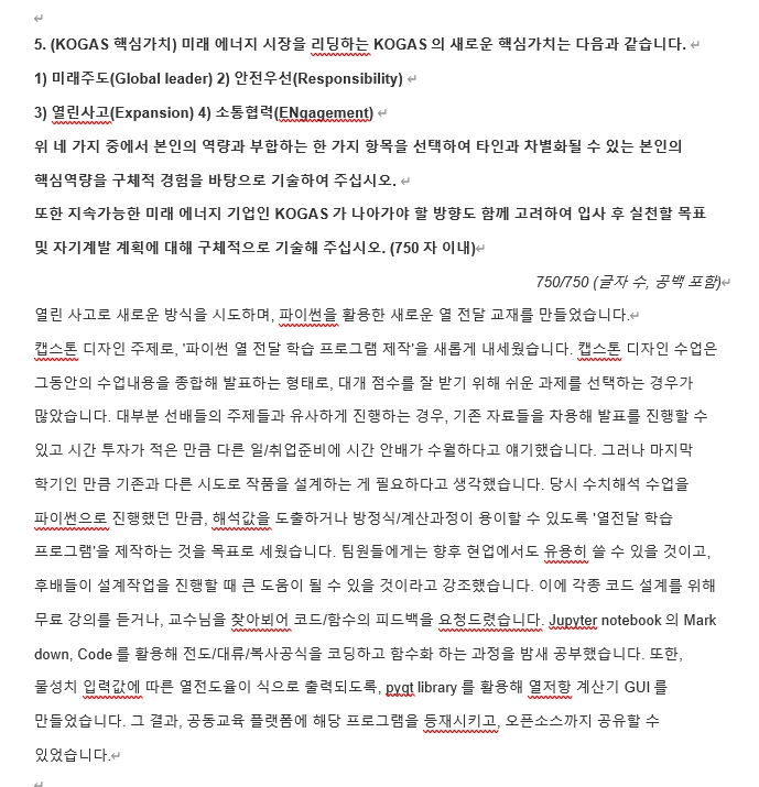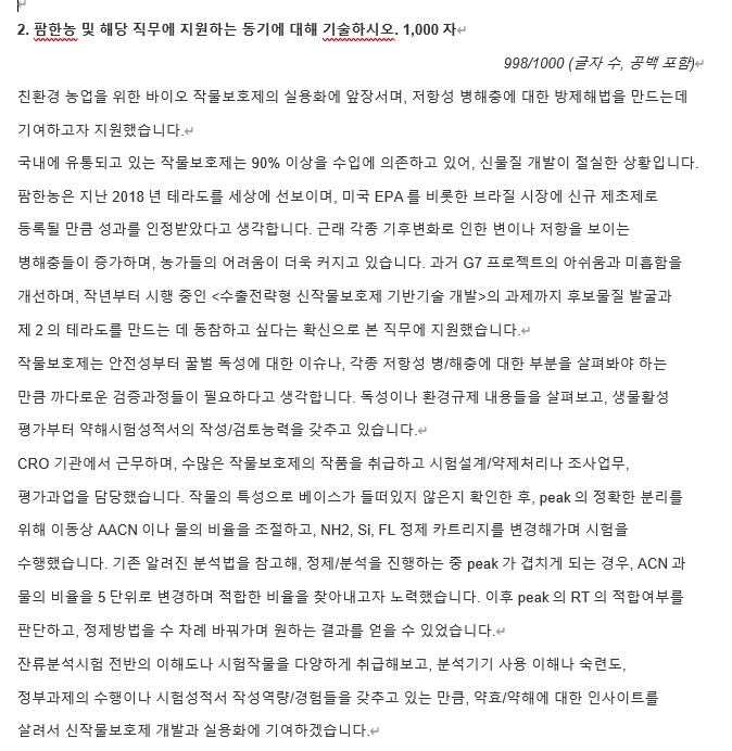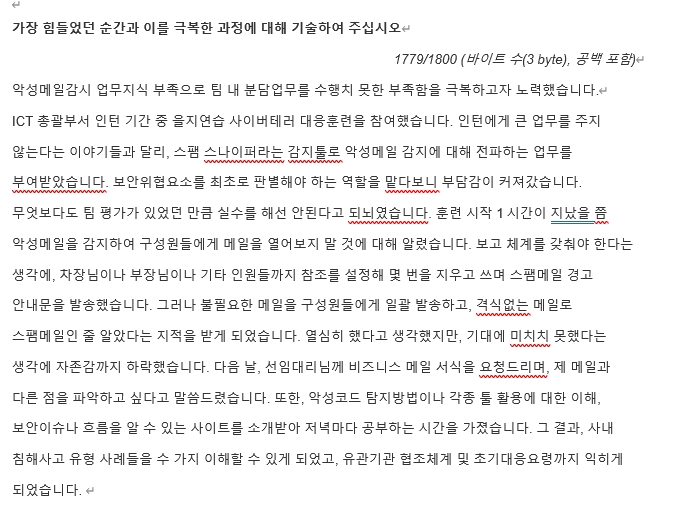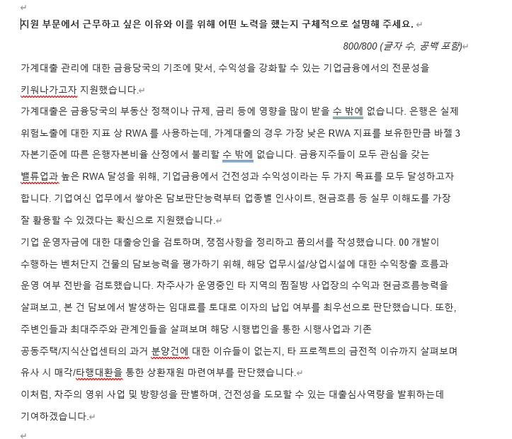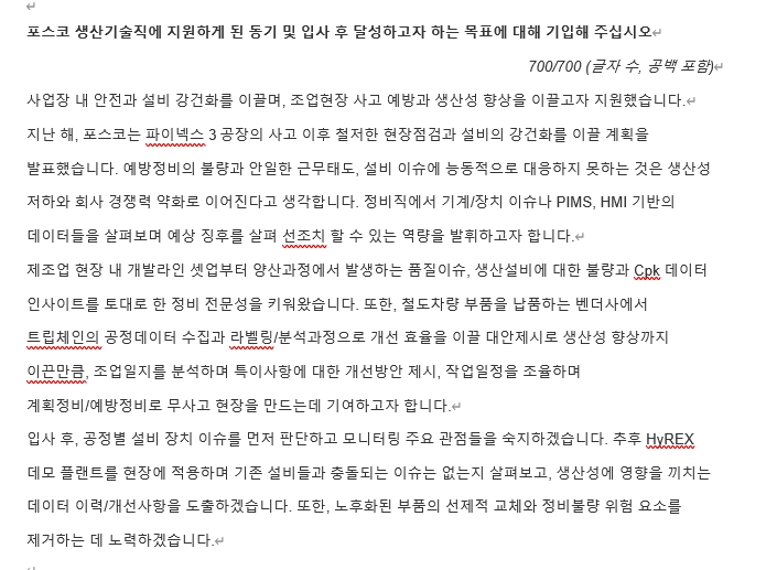 (2) 제공드린 질문내용에 대한 지원자의 답변 서술