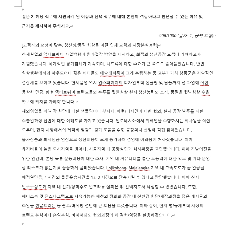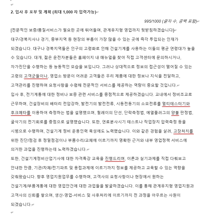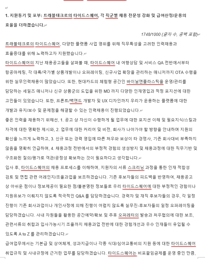 👆 완성본 제공 시, 단순 어구나 말투/맞춤법 등만을 검토하여 보내드리지 않습니다. 절대로 챗GPT를 활용하거나 공장식으로 동일 기업/직무에 대한 작성사례를 복사/붙여넣기를 하지 않습니다.