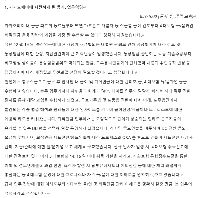 👆 직무 에피소드나 인재상/핵심가치 기반 STAR 경험 서술 문항은 추후 타 기업에도 500/700/1000자 내외로 자유롭게 응용할 수 있도록 도움드립니다.