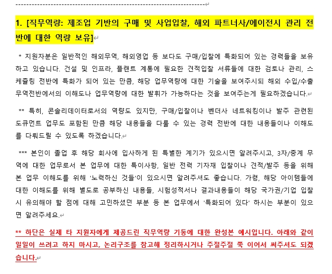 1. 실제 컨설턴트가 분석하고 작성/완성한 지원동기/포부 작성 예시