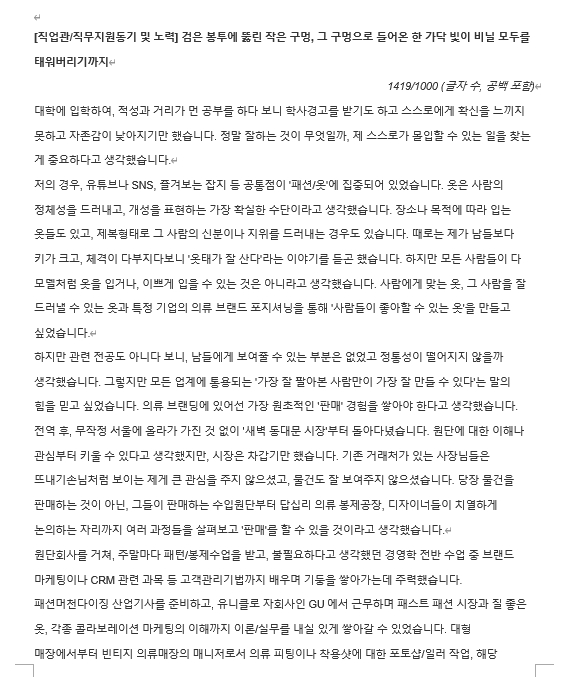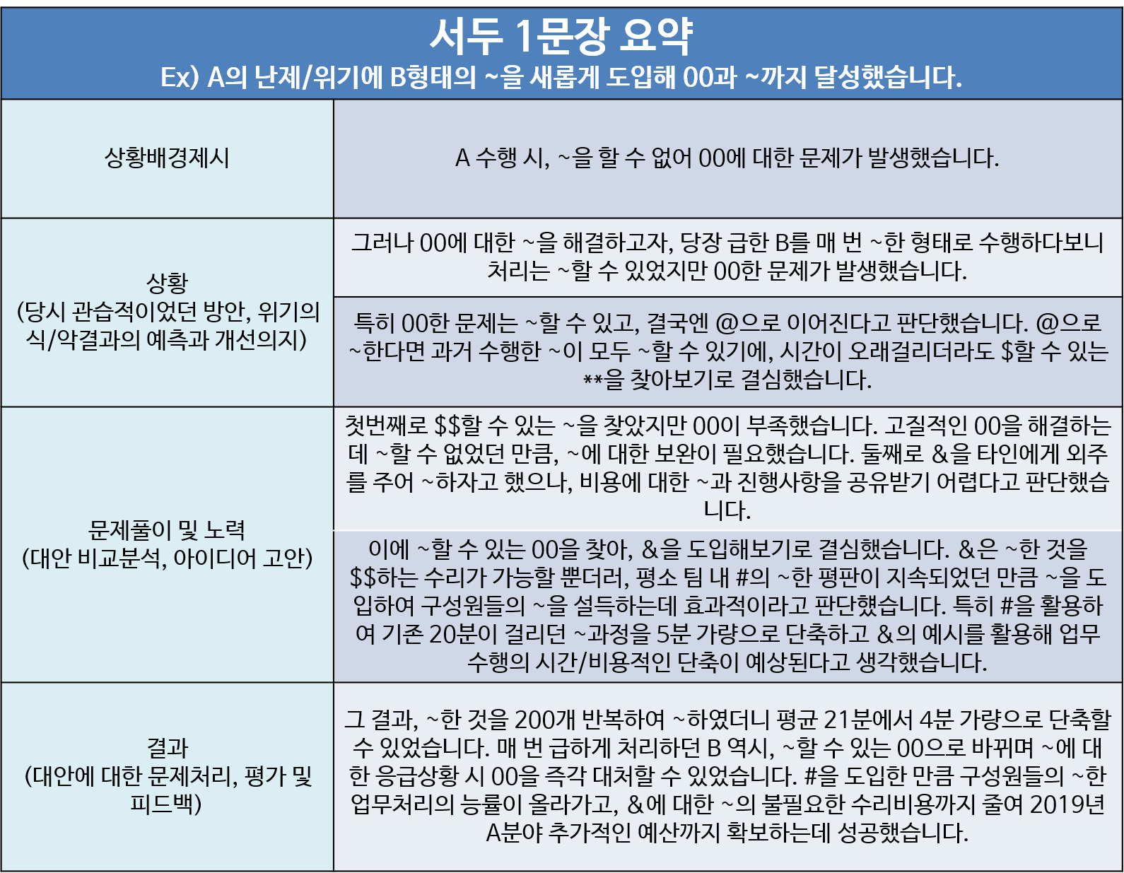 채용과정에서 가장 중요한 순간은 해당 기업에 지원하는 첫 순간, **'자기소개서에서 비춰지는 진정성과 직무에 대한 관심도/노력, 구조화 서술의 내용'**입니다. 아무리 뛰어난 스펙을 가졌더라도, 자기소개서에 진정성이 없다면 면접에서 좋은 결과를 얻을 수 없고, 서류 및 인/적성 전형에 통과하여 면접을 준비중이시라면 **'해당 기업에 대한 깊은 분석과 자신만의 인사이트, 해결자적인 입장'**을 보여주는게 중요합니다.