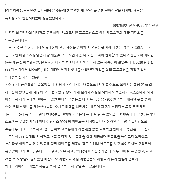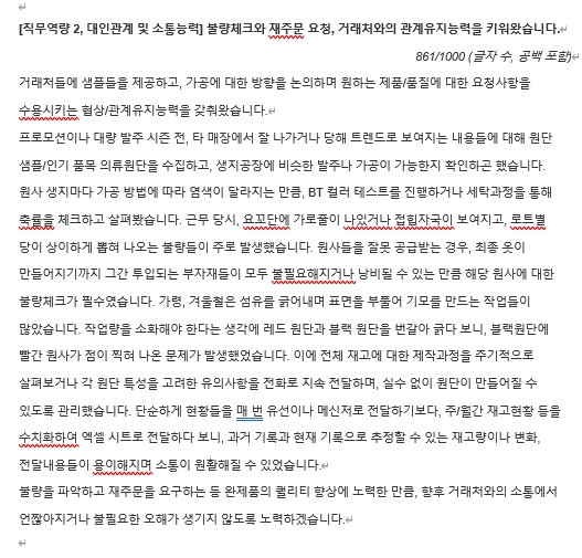 👆 완성본 제공 시, 단순 어구나 말투/맞춤법 등만을 검토하여 보내드리지 않습니다. 절대로 챗GPT를 활용하거나 공장식으로 동일 기업/직무에 대한 작성사례를 복사/붙여넣기를 하지 않습니다.