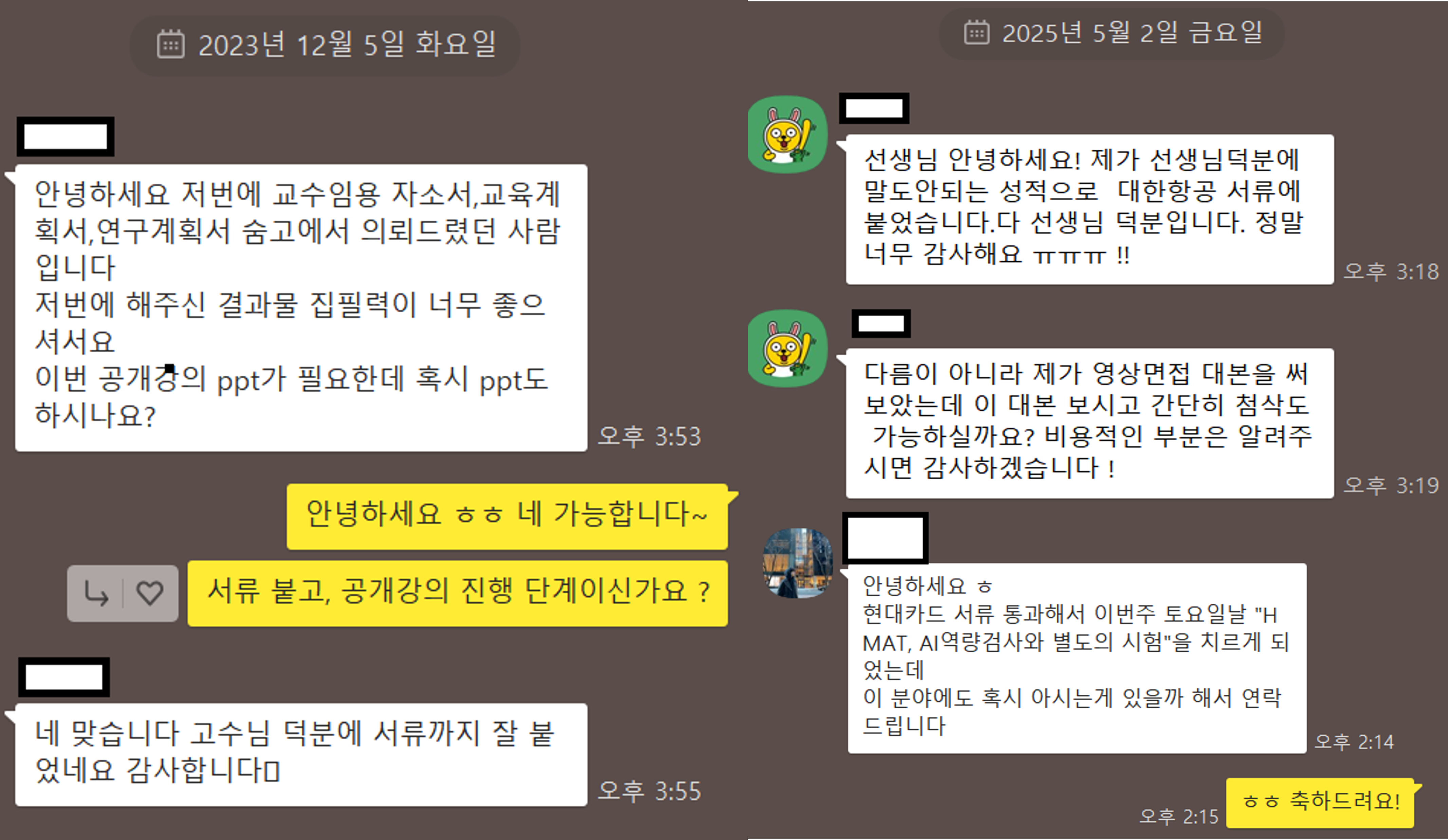구체적인 피드백과 수정으로 기대했단 자소서를 얻을 수 있었습니다. 꼭 합격하면 좋겠네요!