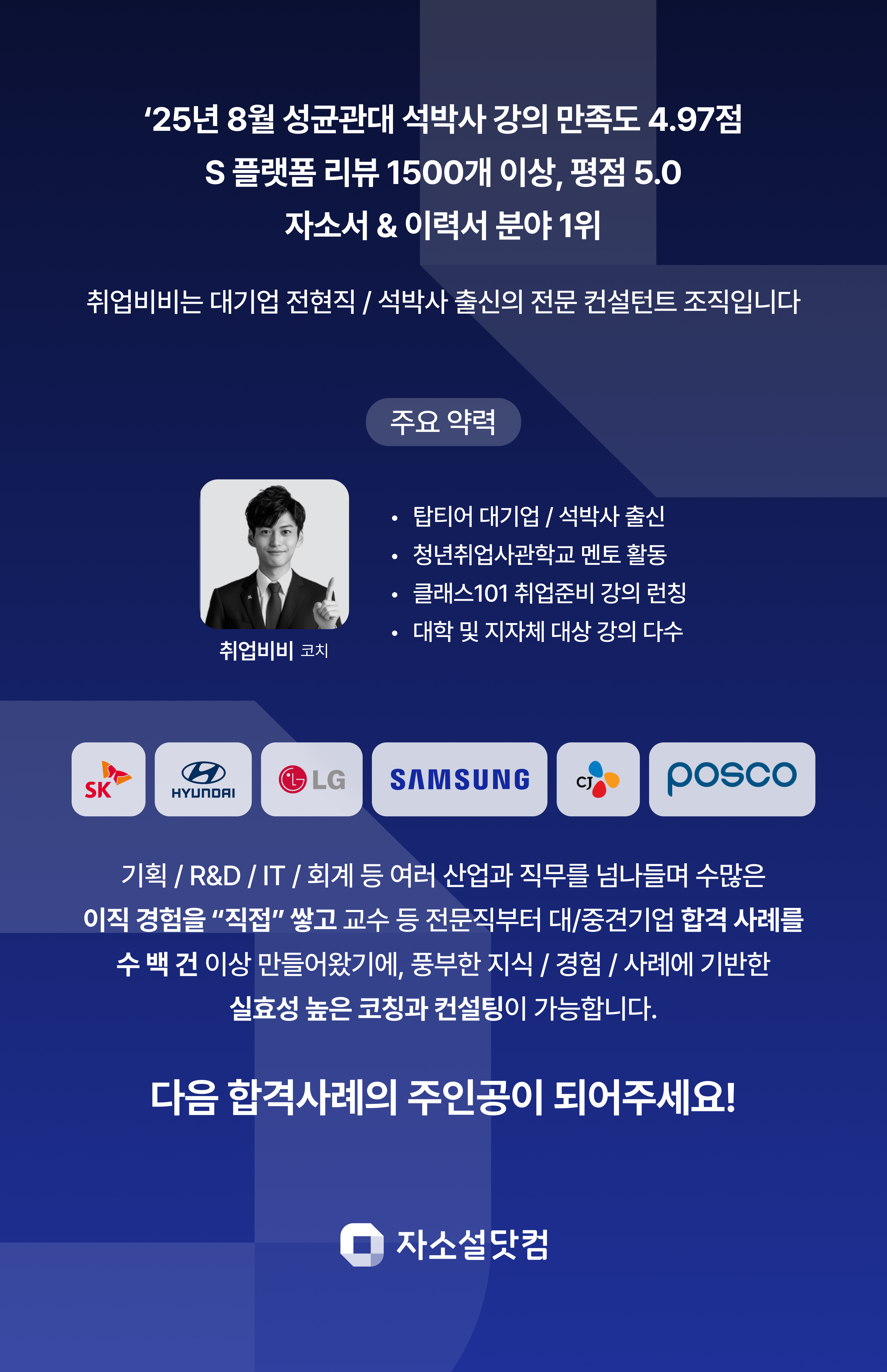 ★ 다른 상품 : 대/중견기업 자소서 컨설팅