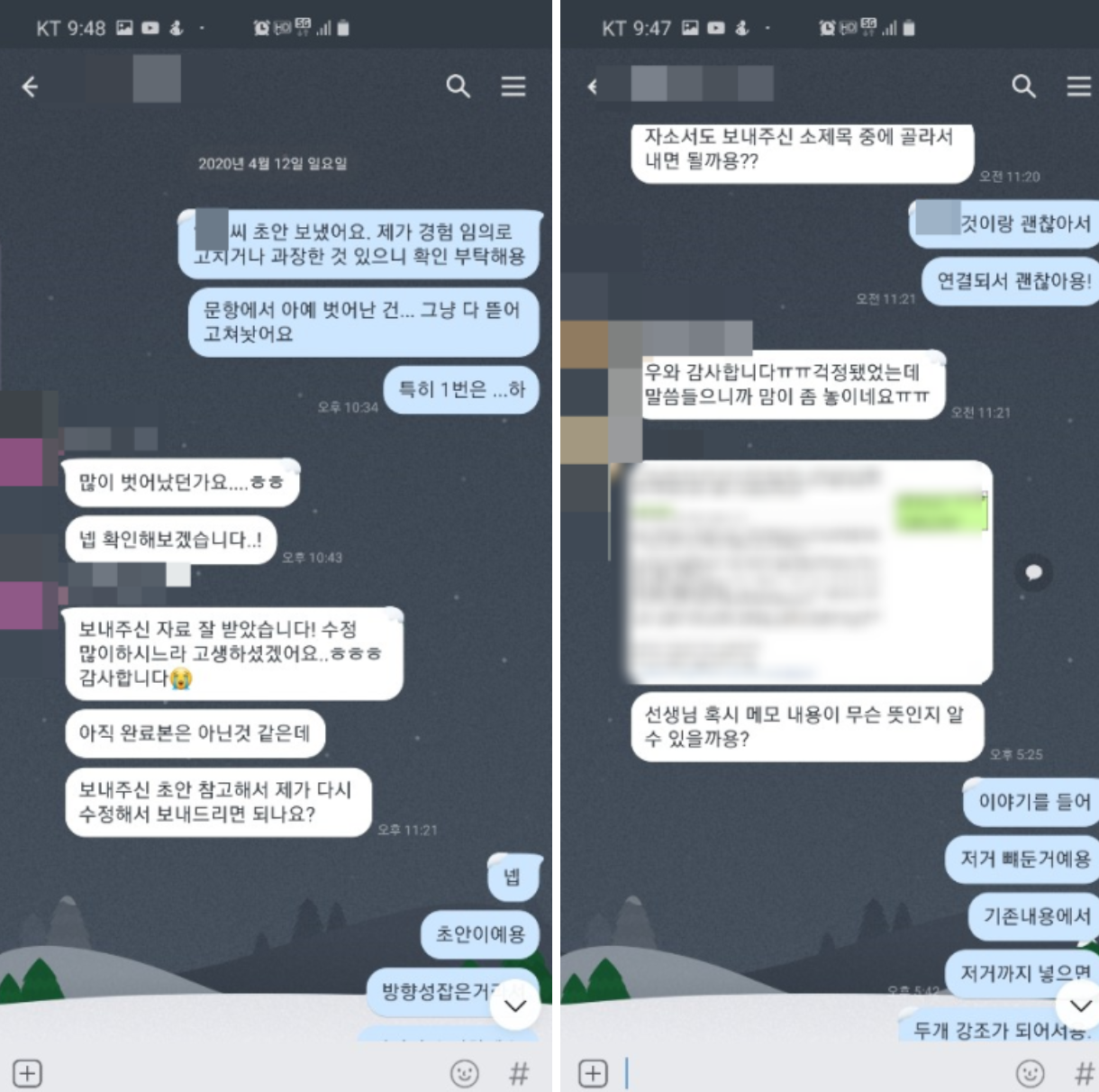 2. 단순 의견 외 대필 수준으로 직접 수정을 진행합니다.